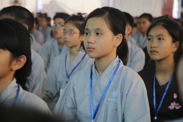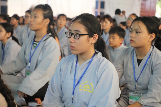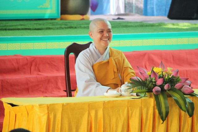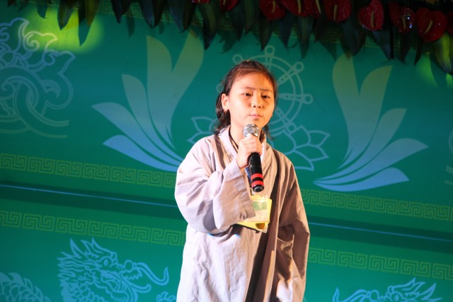 Thời giảng pháp của Sư cô Hương Nhũ với chủ đề “Những đức tính cần có của tuổi trẻ” giúp các em thấm thía hơn ân tình của hai đấng sinh thành đối với người con, thông qua các mẩu chuyện Phật giáo Sư cô nhắn nhủ mỗi bạn trẻ cần thường xuyên trau dồi đức tính kiên nhẫn, thật thà, dũng cảm, hiếu hạnh để trở thành những đóa sen hồng dễ thương.