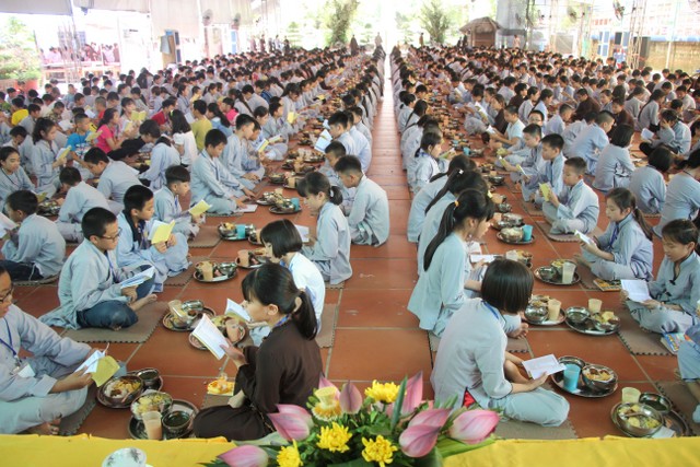 Các bạn trẻ đọc lời quán niệm trước khi ăn