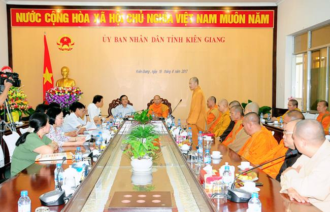 Sáng 19-6-2017, đoàn tân Ban Trị sự GHPGVN tỉnh Kiên Giang nhiệm kỳ IX (2017-2022) do Hòa thượng Danh Đổng, UV Thường trực HĐTS TW GHPGVN, Trưởng Ban Trị sự GHPGVN tỉnh làm trưởng đoàn đã đến trụ sở UBND tỉnh để chào và cảm ơn các cơ quan, ban ngành của tỉnh.