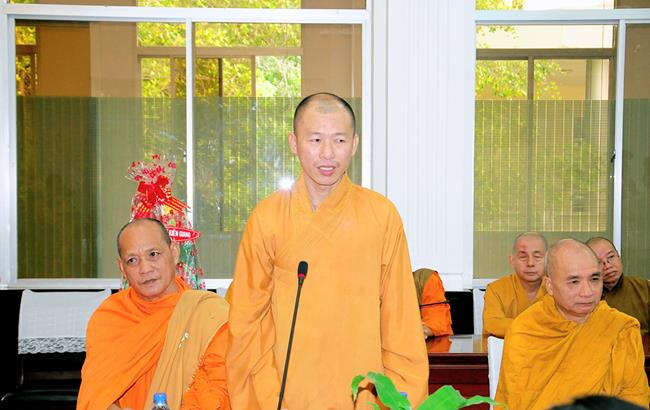 TT.Thích Minh Nhẫn báo cáo kết quả đại hội và gửi lời tri ân đến lãnh đạo tỉnh