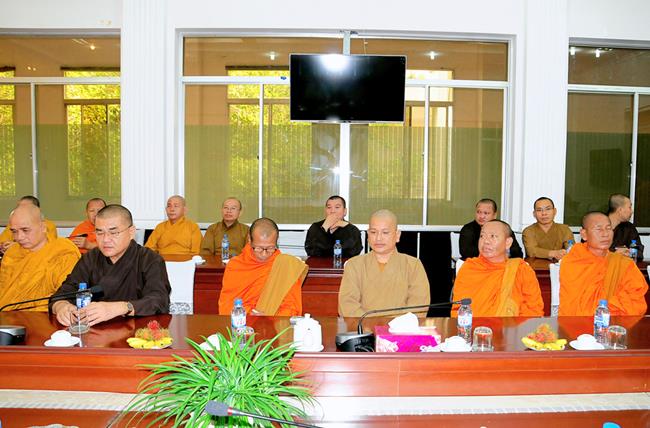 Cùng đi trong đoàn còn có TT.Thích Minh Nhẫn, UV HĐTS TW GHPGVN, Phó trưởng ban Thường trực Ban Trị sự tỉnh cùng chư Tôn đức Tăng, Ni Thường trực Ban Trị sự GHPGVN tỉnh nhiệm kỳ IX.