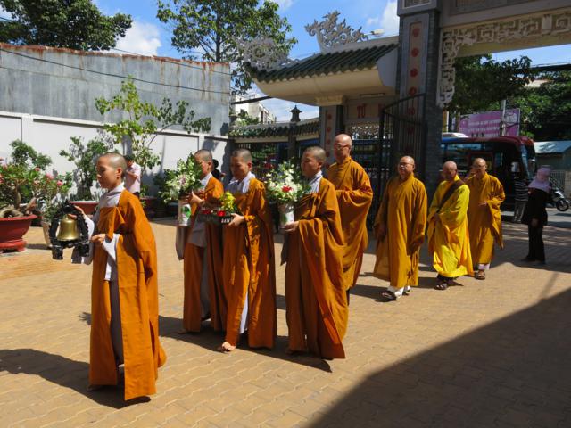 Chư Ni trường hạ chùa Phổ Đức tỉnh Tiền Giang cung nghinh phái đoàn
