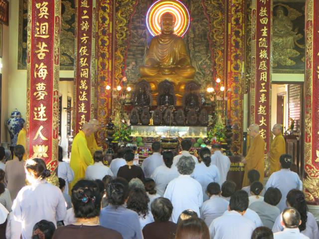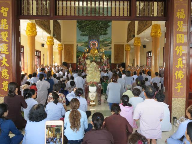 HT. Thích Chơn Không-Quyền Trưởng Ban Hướng dẫn Phật tử GHPGVN TP.HCM tác bạch cúng dường tại Trường hạ chùa Hưng Phước, Q.3.