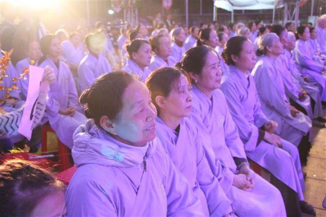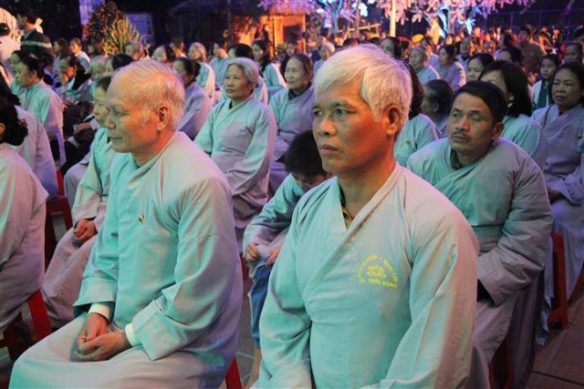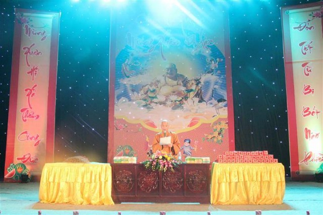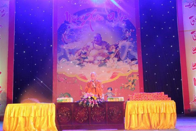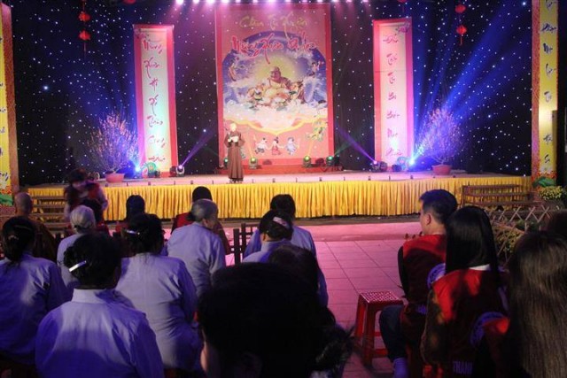 Sau chương trình ca nhạc là khóa lễ tụng kinh cầu an và thời chia sẻ Phật pháp của thượng tọa trụ trì. Trong thời pháp thoại quý thượng tọa đã nói lên ý nghĩa của việc mừng xuân Di Lặc, những đức hạnh của vị Bồ Tát lúc nào và bao giờ cũng mỉm cuời thật hoan hỉ và an lạc. Và thời khắc giao thừa đã đến cả đại chúng chắp tay trang nghiêm lắng nghe thư chúc tết của Hòa thượng Pháp Chủ HĐCM GHPGVN gửi tới tăng ni Phật tử trong và ngoài nước.