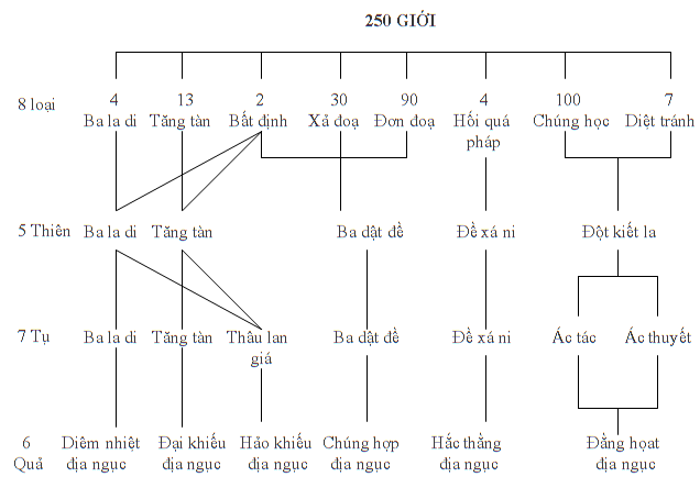 hạnh. Thật ra, 250 điều giới tướng của Tỳ kheo lại có 8 loại điều văn, 5 thứ