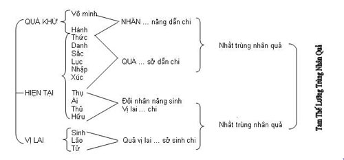 Trên đây là Tam Thế Lưỡng Trùng Nhân Quả. Tuy nhiên, đứng trên lập trường của Phật mà nói thì cách giải thích này Phật đã nói theo quan điểm rất thông tục chứ quyết không phải là đệ-nhất-nghĩa. Ðó là điều chúng ta cần ghi nhận.