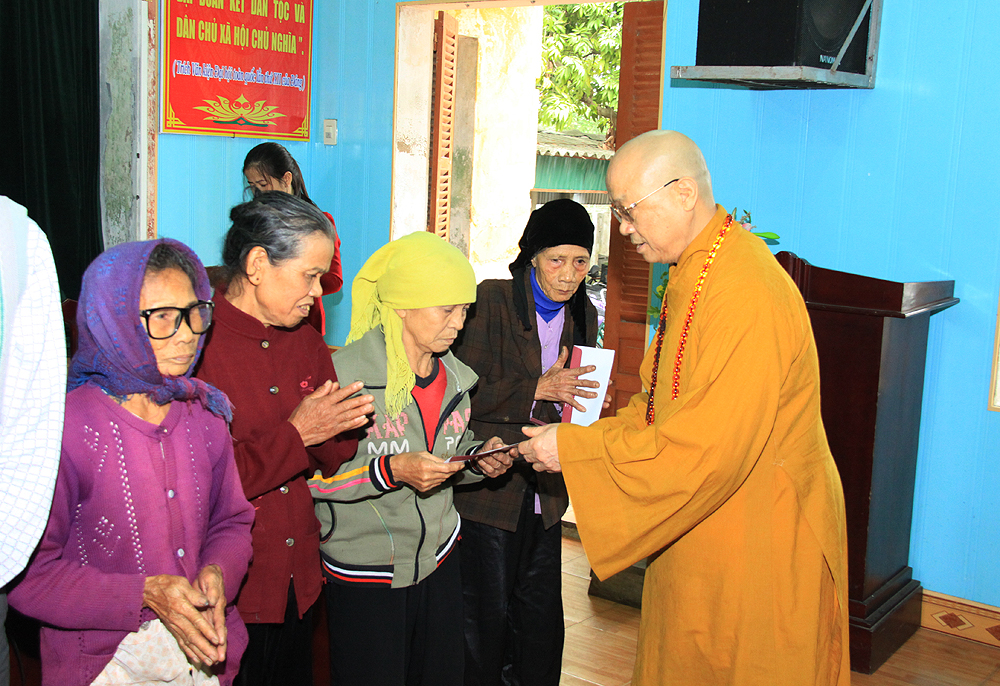 HT.Thích Thanh Nhã trao quà tại xã Hiệp Hoà