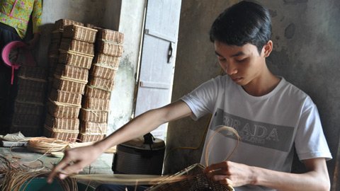 Rời sách vở, Duẩn lại giúp mẹ cạp lại quai cho sản phẩm mây tre đan.