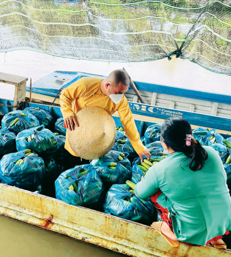 Những gian hàng không đồng, từng hộp cơm nghĩa tình, từng bó rau, chai nước… đẫm mồ hôi giữa tiết trời oi bức mùa Hạ. “Của cho không bằng cách cho”, người con Phật luôn mang theo bên mình tâm niệm khiêm nhường, chỉ mong người nhận không chạnh lòng với phận đời bé nhỏ của mình. Đạo Phật luôn muốn đến với cuộc đời bằng những điều bình dị nhất và đâu đó cũng có những bước chân tạm phải rời xa già lam để hỗ trợ tuyến đầu tâm dịch. Nếu tình người không đủ lớn, tấm lòng không đủ bao dung, thì không bao giờ những người con Phật lại làm được những chuyện mang tính chất đánh đổi đầy nguy hiểm đến vậy.