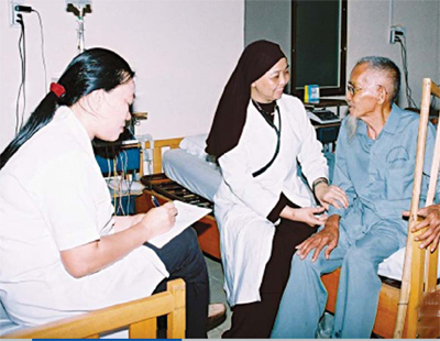 Ni sư - BS. Liên Thanh đang khám bệnh cho người già neo đơn tại PKĐK Long Bửu.