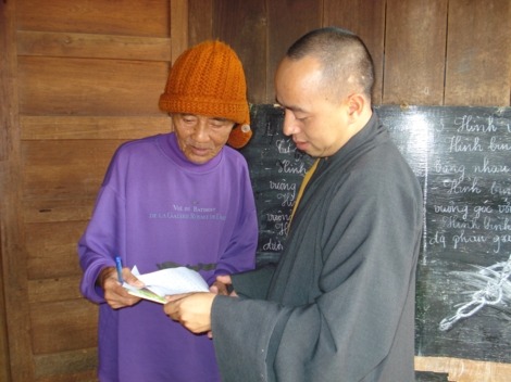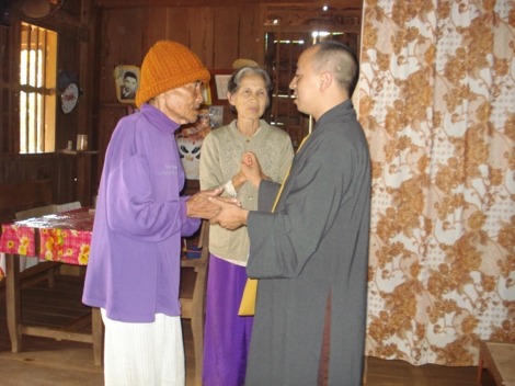 Những nhà thầy đi thăm có người đã thờ Phật  , có người chưa thờ  . Nhưng có chung một điểm là nghèo và neo đơn . Xúc động nhất là khi thầy vào thăm và tặng quà cho  nhà cụ bà Nguyễn thị Min pháp danh Nhuận Lâm   và cụ ông Lý Văn Thanh  ở thôn Hiệp Thịnh , xã Quãng Hiệp .