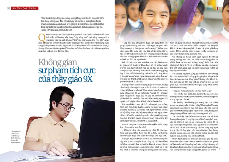Qua trò chuyện với Giác Ngộ, thầy giáo trẻ Trần Quốc Tuấn cho biết trên tinh thần khởi động, xây dựng “nếp sống mới”, mỗi sáng trong nhóm chat Zalo của lớp anh thường “thả” vào đôi ba câu thơ “gọi dậy” ngày mới, để học trò có tinh thần hơn cho một ngày học tập hồ hởi: “Trời sang buổi sáng rồi kìa/ đứa nào chưa dậy chính là cú đêm/ thức rồi lại muốn thức thêm/ vì sáng hôm nay dịu êm quá mà”. Lần lượt một bạn, hai bạn, rồi cả lớp cùng nhau phản hồi và buổi học dần bắt đầu.