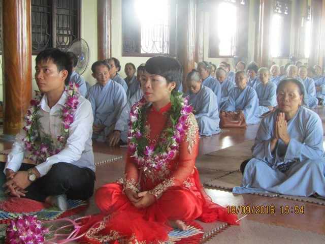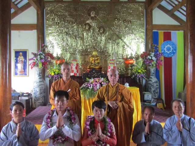 Chư tôn đức và toàn thể đại chúng đã thành kính làm lễ niêm hương bạch Phật, trì chú cầu an cho hai bạn. Kết thúc buổi lễ, đại diện hai bên gia đình đã có lời cảm tạ, cảm niệm công đức của chư Tôn đức và toàn thể đạo tràng.