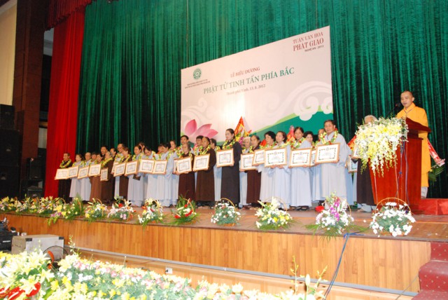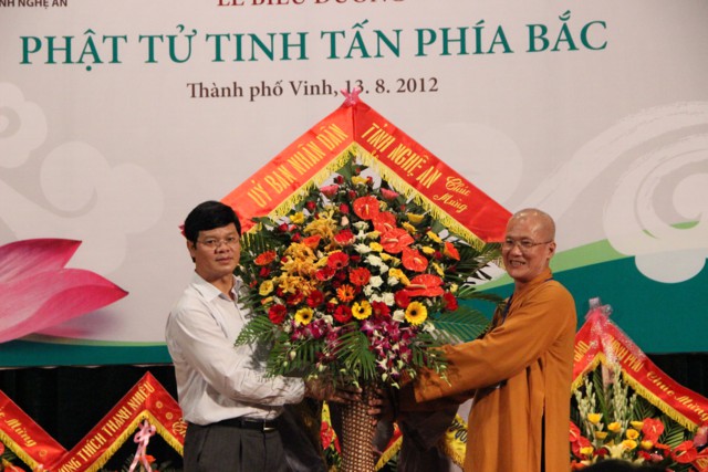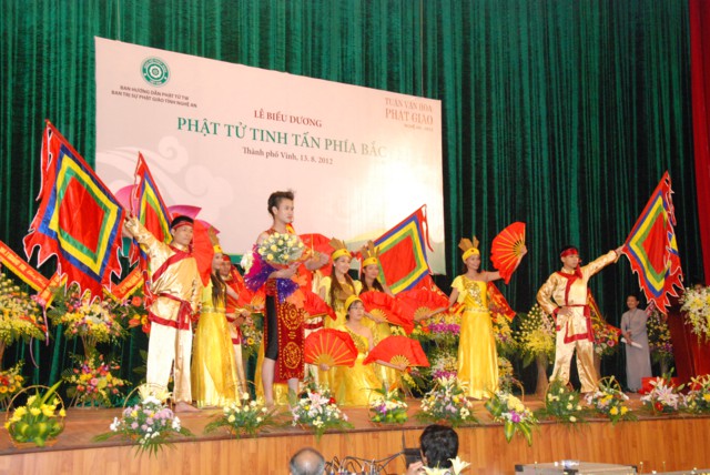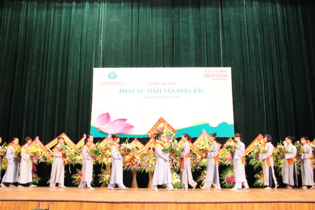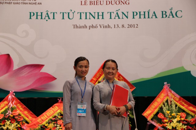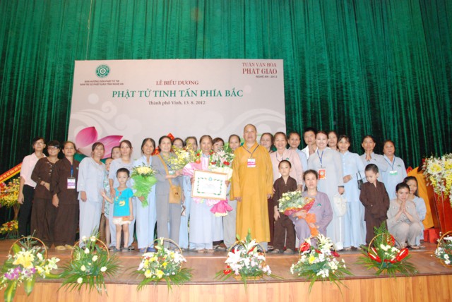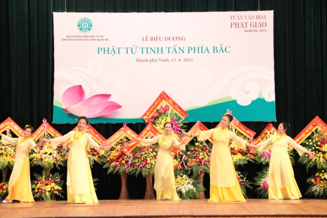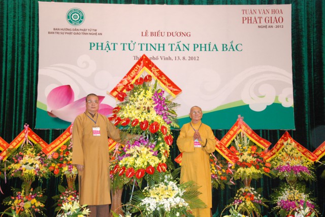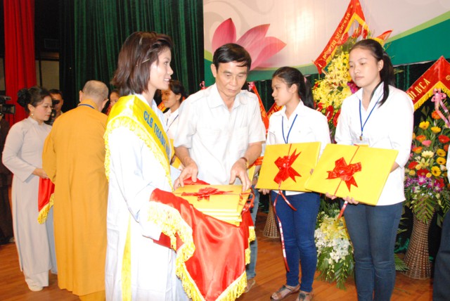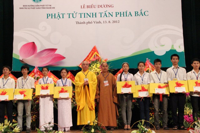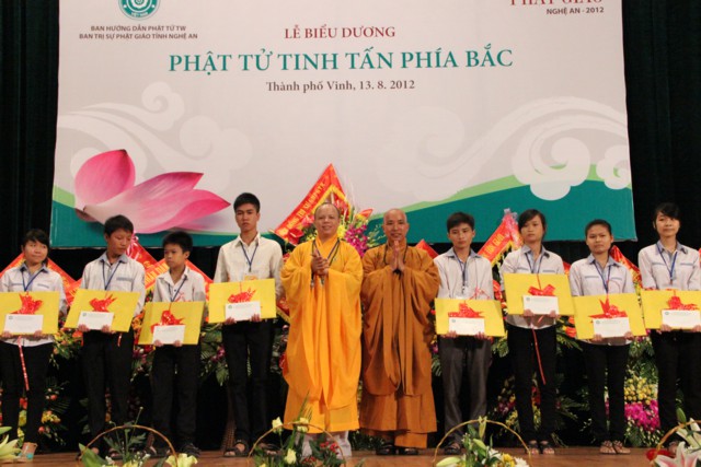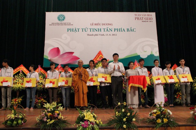 Tối ngày 13 tháng 08 năm 2012, Ban HDPT TW kết hợp với ban văn hóa TW GHPGVN, ban Trị sự Phật giáo Nghệ An đã long trọng tổ chức trao bằng tuyên dương công đức cho các Phật tử tinh tấn và trao học bổng cho các em học sinh nghèo vượt khó học giỏi tại nhà văn hóa lao động Nghệ An.