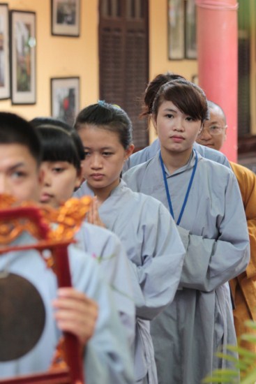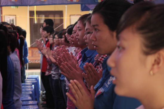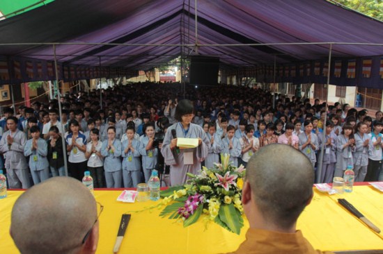 Trước khi vào khóa tu các sinh viên phải đọc to những quy định trong thời gian ở lại chùa thực hiện khóa tu.