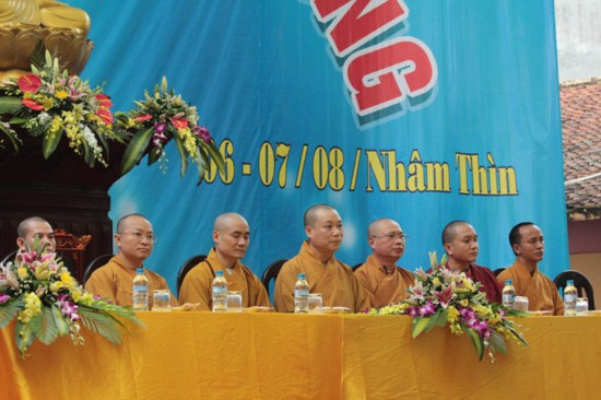 Các bậc tu hành chùa Bằng A giảng đạo cho các khóa sinh tham dự khóa tu.