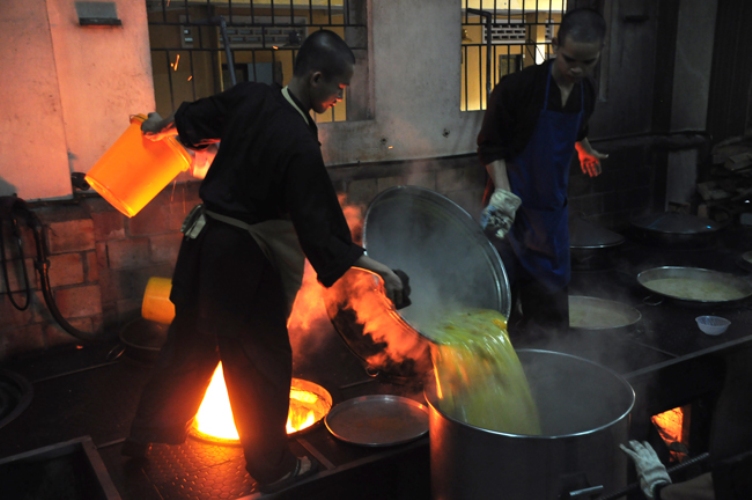 Để đảm bảo sức khỏe cho các bạn trẻ về tham dự khóa tu tại chùa Hoằng Pháp, các thầy và Phật tử của chùa phải thức khuya dậy sớm để nấu hơn 3.000 phần ăn trong suốt thời gian diễn ra khóa tu