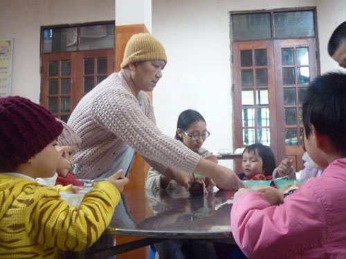 Sư cô Minh Tịnh đi qua, đi lại tất bật xới thêm cơm và gắp món ăn cho các em. Lúc này trông gian nhà ăn ấm cúng như một đại gia đình. Đứa lớn đút cơm cho đứa nhỏ ăn. Đứa nhỏ ăn xong mới đến lượt đứa lớn. Hơn 50 đứa trẻ lại có một bữa ăn ngon lành, đầm ấm.