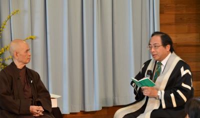 Sáng ngày 13/3/2014, tại thiền đường Nước Tĩnh, xóm Thượng Làng Mai, Giáo sư Lap-Chee Tsui, Viện Trưởng Trường Đại Học Hồng Kông đã trao bằng Tiến sĩ Danh Dự trong lĩnh vực khoa học xã hội cho Thầy Làng Mai – Thiền sư Thích Nhất Hạnh để vinh danh những đóng góp của Thầy cho nền hòa bình thế giới. Nhân dịp này, Thầy Làng Mai và Giáo sư Lap-Chee Tsui, Viện Trưởng cùng Giáo sư Lee Chak Fan – Giám đốc Trường giáo dục chuyên môn thường xuyên (HKU SPACE) của Đại học Hồng Kông đã có buổi đối thoại về chủ đề Tuổi trẻ ngày nay. (Ban biên tập xin được trích dẫn một số nội dung chính của buổi đối thoại - nội dung được chuyển ngữ từ tiếng Anh)