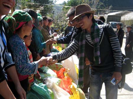 Chuyến đi từ thiện "Trái tim nhân ái” lên huyện miền núi cực Bắc Đồng Văn là một chuyến đi khó quên với 25 thành viên của đoàn Phật tử trẻ Thiện Tín. Nó đã để lại cho các bạn trẻ thành phố những bài học đầy ý nghĩa về cuộc sống.Chuyến đi đã giúp các bạn biết về một cuộc sống nhọc nhằn, lam lũ, khác xa với cuộc sống đủ đầy của các bạn ở Thủ đô. Đó là những hình ảnh về đôi bàn tay rớm máu trong buổi chiều giá lạnh của một em bé vùng cao, những suất ăn ít ỏi của học sinh một trường tiểu học miền núi, những nương ngô xơ xác của đồng bào dân tộc ở Hà Giang… Đoàn Thiện Tín trao quà cho đồng bào dân tộc ở Hà Giang. |