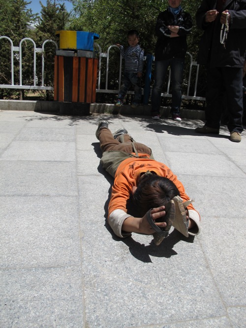 một lần. Cách vái lạy của người Tạng là “ngũ thể nhập địa”- họ chắp tay