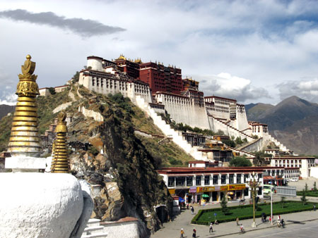 Biểu tượng của thành phố Lhasa là Cung điện Potala, theo tiếng Sankrit nghĩa là Cung điện của Bồ Tát. Đây là nơi ở và làm việc của các vị Đạt Lai Lạt Ma, lãnh tụ tinh thần của Tây Tạng. Cung điện Potala được xây dựng trên núi Mabuge (núi Đo), cao hơn thành phố Lahasa tới 9m. Nó cao đến 13 tầng, như một vách đá màu trắng sừng sững nên đứng tại bất kỳ đâu ở Lhasa, du khách cũng có thể thấy được cung điện này.