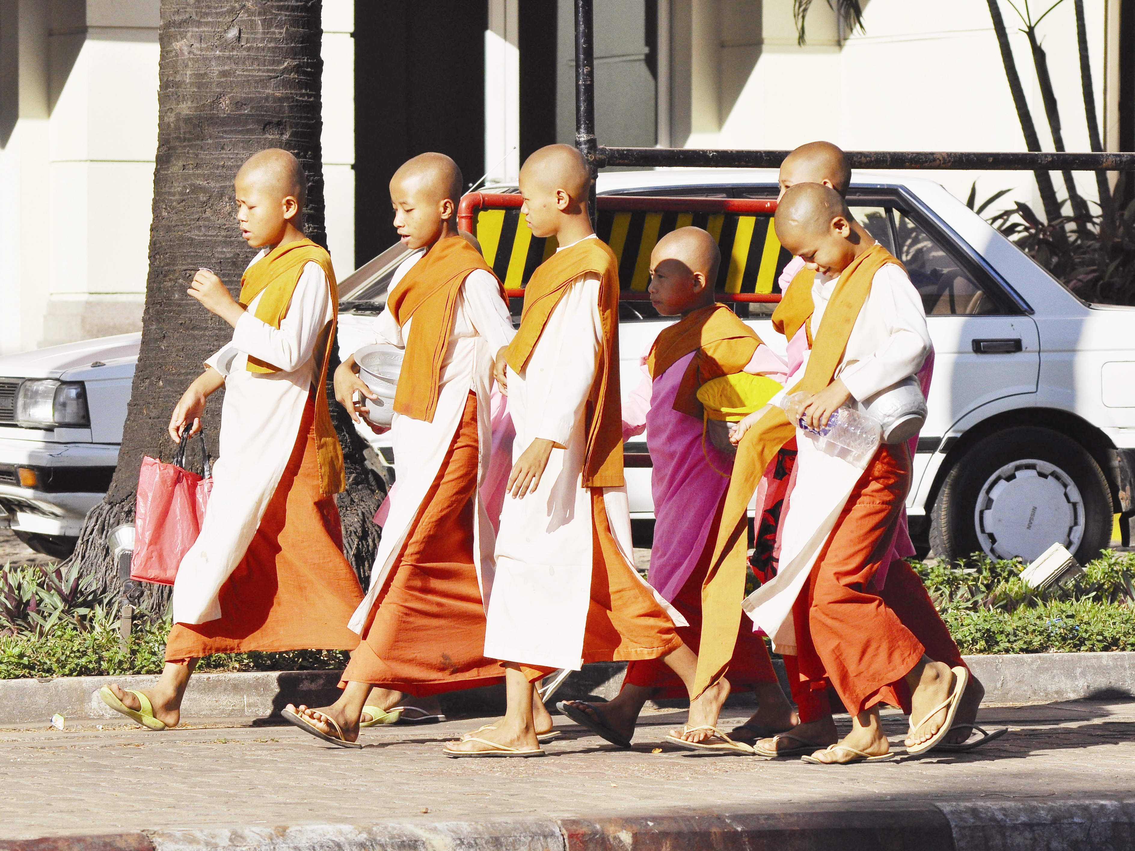 Không khí đang bình bình lặng lặng, bỗng đâu một đám rước trang trọng tiến đến. Lát sau lại đám nữa. Ra là lễ xuất gia của một tiểu đồng. Đoàn người rồng rắn, hân hoan, cắp chăn chiếu, vật dụng cá nhân, đưa rước một chú bé ăn vận rực rỡ có lọng che. Chú nở nụ cười ngây thơ và kiêu hãnh. Ở đất nước Phật giáo này, xuất gia đúng là niềm kiêu hãnh của mỗi gia đình. Nhà có người xuất gia thì kể như danh giá. 5 tuổi, chú bé được gửi vào chùa, sáng dậy từ 4 giờ đi khất thực. 11giờ mới được ăn bữa chính, nhịn cho đến tận sáng hôm sau.
