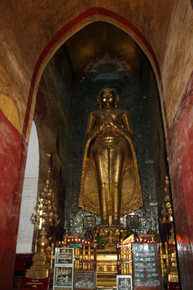 Trên hành trình tới Myanmar, du khách thường ghé thăm cố đô Bagan, với hơn hai nghìn ngôi chùa và đền đài được xây dựng từ thế kỷ 11 đến thế kỷ 13. Ở Bagan, ngôi đền lớn và được bảo tồn nguyên vẹn nhất phải nói đến đền Anada, xây dựng năm 1105 được xem là kiệt tác về kiến trúc đền đài. Trong đền có 4 tượng Phật bằng gỗ, cao hơn 9m, trang trí nhiều vàng lá, quay về 4 hướng khác nhau. Trong ảnh là bức tượng phía Bắc.