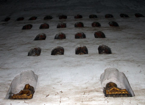 Trên tường của ngôi đền này có rất nhiều các tượng phật nhỏ.