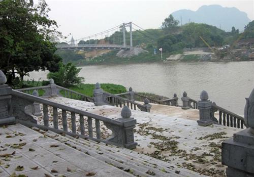 Từ chùa Bà Đanh nhìn ra cầu Cấm Sơn. Nếu tính theo đường chim bay, chùa Bà Đanh chỉ cách quốc lộ 21B khoảng 400m |