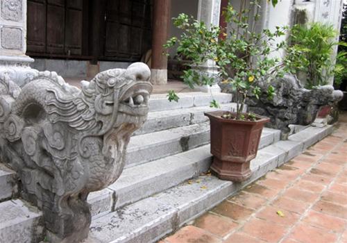 Đôi rồng đá chạm khắc tinh xảo trong sân chùa |