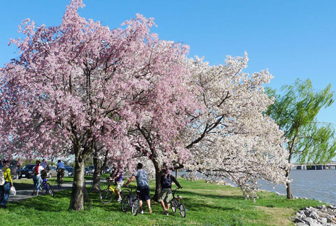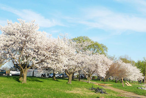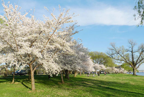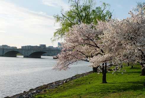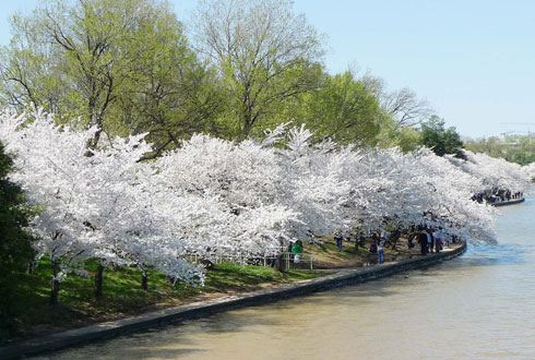 | | Khu vực quanh hồ Tidal Basin nằm ở trung tâm thủ đô tập trung nhiều hoa anh đào bên cạnh các điểm tham quan nổi tiếng. |