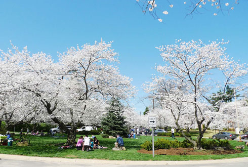 | | Từ đó người Mỹ đã chăm chút và nhân giống cây hoa anh đào trồng khắp thủ đô Washington và một số thành phố khác. |