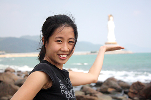 Tới thăm đảo Hải Nam, rất ít du khách bỏ qua cơ hội chụp hình chung với tượng.