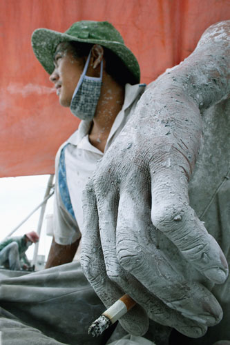 Chỉnh sửa những chi tiết cuối cùng để những bức tượng về Công viên tâm linh.