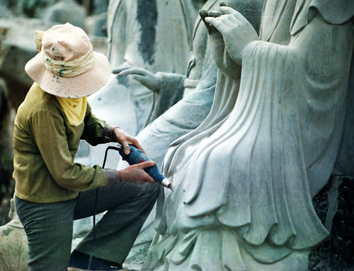 Đôi bàn tay và thân thể của người nghệ nhận làng đá Ninh Vân luôn bám đầy bui đá nhưng ánh mắt luôn chất chứa đam mê thổi hồn cho đá để mỗi bức tượng phật có hồn, có cốt.