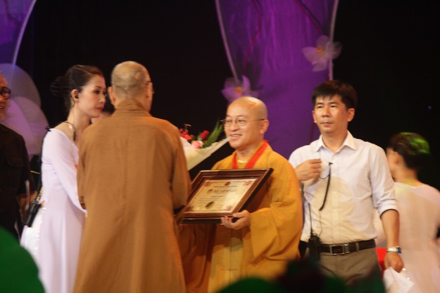 Đêm văn nghệ còn được trung tâm sách kỷ lục Việt Nam, Vietbook trao 7 kỷ lục cho bảy đơn vị có những đóng góp to lớn đứng đầu Phật giáo Việt Nam. Đó là những kỷ lục: Trường Phật giáo đào tạo nhiều Tăng Ni sinh nhất: Học Viện Phật giáo Việt Nam tại Thành phố Hồ Chí Minh; Ngôi chùa sản xuất phim Phật giáo nhiều nhất: Chùa Hoằng Pháp (xã Tân Hiệp, huyện Hóc Môn, TP.HCM); Tượng Phật nhập niết bàn bằng đá sa phia lớn nhất: chùa Hội An (tỉnh Bình Dương);   Kênh truyền hình sản xuất và phát sóng nhiều chương trình nhất về chủ đề Phật giáo: kênh Truyền hình An Viên (AVG); Người biên tập và biên soạn kinh sách Phật giáo nhiều nhất: Thượng tọa Thích Nhật Từ; Người đọc sách nói Phật giáo nhiều nhất: Bà Nguyễn Hướng Dương; Bộ sưu tập tem về đề tài Phật giáo nhiều nhất: Ông Nguyễn Đại Hùng Lộc. Giáo sư Nguyễn Khắc Thuần đại diện hội kỷ lục gia Việt Nam tuyên đọc quyết định. HT. Thích Thiện Tánh cùng trao kỷ lục.