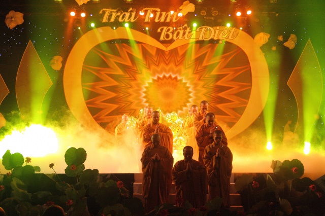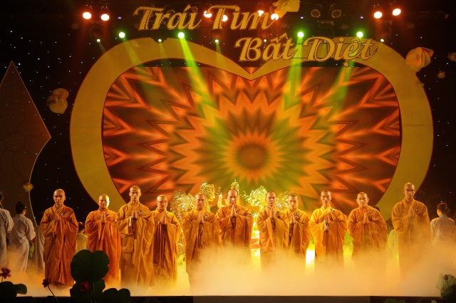 Một đêm văn nghệ hoành tráng được dàn dựng công phu để lại nhiều ấn tượng trong lòng khán giả. Chương trình được chia làm 3 chương, bao gồm: 1. Trái tim từ bi, 2. Trái tim bất diệt và 3. Trái tim yêu thương, với sự góp mặt rất nhiều ca sĩ, nghệ sĩ nổi tiếng như: Phương Thanh, Lý Hải, Đức Tuấn, Nguyên Vũ, Hồ Quang Hiếu, Quang Hà, Quách Thành Danh, Bằng Cường, NSƯT Nhất Sinh, Nghệ sĩ Quế Trân, nhóm hài Nhật Cường,...