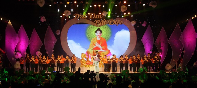Khán phòng chật kín người xem, tất cả đều hướng về ngày đức Phật đản sanh, tất cả để tôn vinh vị cha lành ra đời vì hạnh phúc và an lạc cho chư thiên và loài người. Đồng hướng về vị Bồ tát với trái tim bất diệt, dẫu ngàn năm tình ấy chẳng phai mờ.