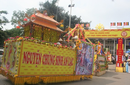 Đoàn diễu hành xe hoa mang đậm tinh thần Phật giáo tại đại lễ Phật Đản 2010. (Ảnh: Anh Thế)