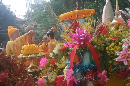 Hòa thượng Thích Thanh Tứ thực hiện nghi lễ "Tắm Phật" tại đại lễ Phật Đản 2010.