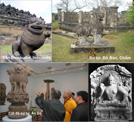 Sư tử không chỉ được thể hiện trong nghệ thuật cổ của người Việt mà còn trở thành một linh vật phổ biến trong điêu khắc đá cổ Chăm Pa (Chiêm Thành).