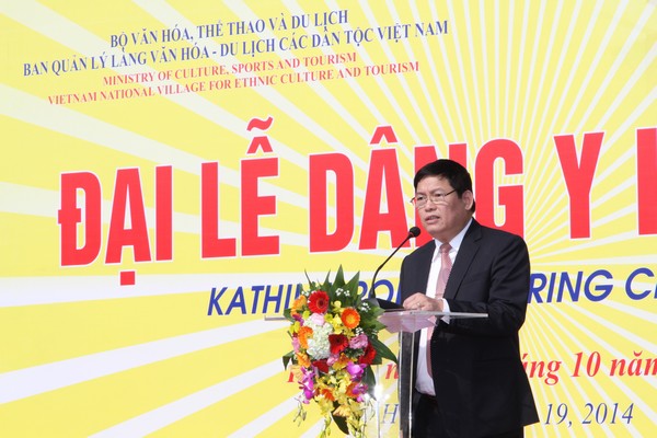 Phát biểu khai mạc HT.Thạch Sok Xane nhấn mạnh: Đây là lần đầu tiên Hội đồng trị sự Giáo hội Phật giáo Việt Nam và tăng ni Phật tử chùa Khmer ở Làng Văn hóa-du lịch các dân tộc Việt Nam cùng BQL Làng Văn hóa-Du lịch các dân tộc Việt Nam phối hợp với tổ chức sự kiện này, việc tổ chức Đại lễ dâng Y Kathina tại “Ngôi nhà chung” của cộng đồng 54 dân tộc Việt Nam góp phần thể hiện sự quan tâm của Đảng và Nhà nước tới đời sống văn hóa, đời sống tâm linh, tín ngưỡng của cộng đồng 54 dân tộc Việt Nam.